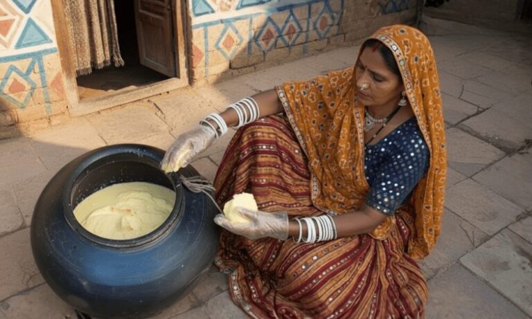 Fresh milk is naturally fermented to set into curd, forming the base for authentic ghee.